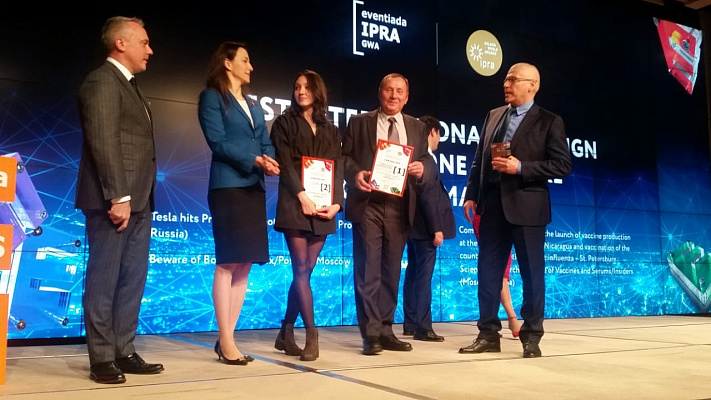 На церемонии награждения лучших коммуникационных проектов международной премии Eventiada IPRA Golden World Awards проект информационного сопровождения запуска производства вакцин от гриппа на заводе Институт MECHNIKOV, реализованный в Латинской Америке при содействии коммуникационной группой «Инсайдерс», признан проектом №1 в категории «Лучшая международная кампания, охватывающая один или несколько зарубежных рынков». Руководитель Департамента международных отношений ФГУП СПБНИИВС ФМБА России Андрей Егоров отметил: «Информационное сопровождение запуска производства вакцин на заводе Институт Mechnikov — сложнейшая задача с координацией усилий в нескольких странах, логистикой журналистов за десятки тысяч километров, длительная коммуникация сразу на нескольких языках.